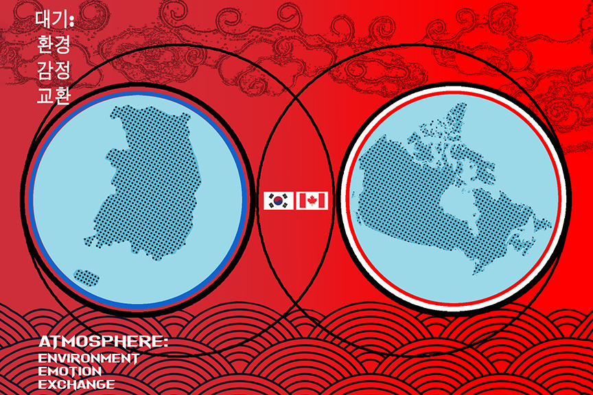 This is a joint exhibition of artworks by Canadian and South Korean artists. Atmosphere is defined as the gases around the earth; but it is so much more. In this exhibition, atmosphere is explored as our surroundings, in terms of the environment, the natural world, social, political and emotional relationships.