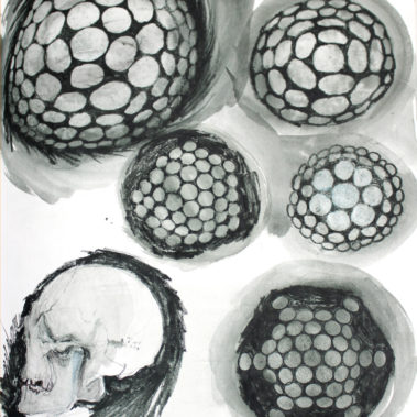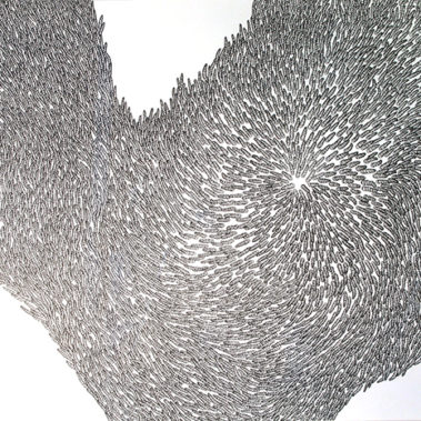 Yvonne Wiegers’ current body of paintings and drawings are hand drawn involving thousands of small shapes that assert their presence by their sheer quantity or energetic lines compressed into large tangled masses. Her work investigates ideas of presence, accumulation and proliferation. Her research centers on themes of population, individuality, swarm behavior, biodiversity, epigenetics, psychology, feminist theory and the idea of infinity.